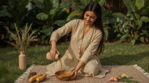 🌺 Step 4: Self-Massage (Abhyanga) Before Bath